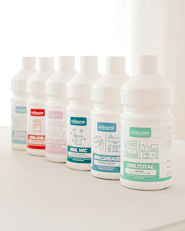 Die Brilhome-Reinigungsmittel sind speziell entwickelt, um selbst hartnäckigste Verschmutzungen mühelos zu entfernen. Ob eingebrannte Kochreste oder Schmutz auf Böden – unsere hocheffektiven Formeln sorgen für strahlende Sauberkeit und makellose Oberflächen, damit Ihr Zuhause in neuem Glanz erstrahlt.